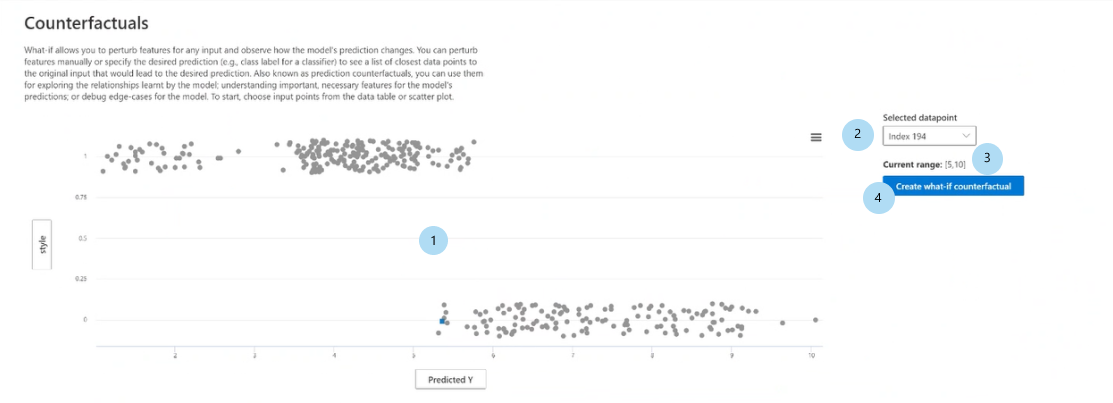 创建假设情景的反事实:打开用于创建反事实数据点的窗格。