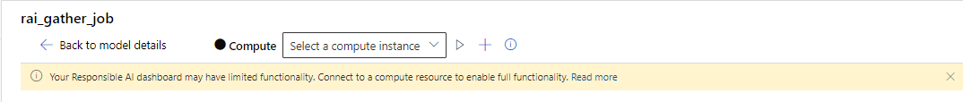 当 Responsible AI 仪表板连接到计算实例时,您会看到一条绿色信息栏。 仪表板现已完全正常运行。