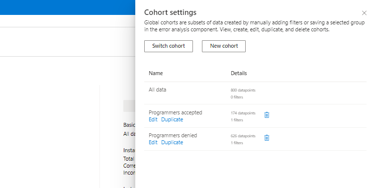 在 “数据集队列 ”页上,可以通过比较各种用户指定的数据集队列的模型性能来调查模型。 可以通过仪表板右上角的 “队列设置” 图标访问这些队列。