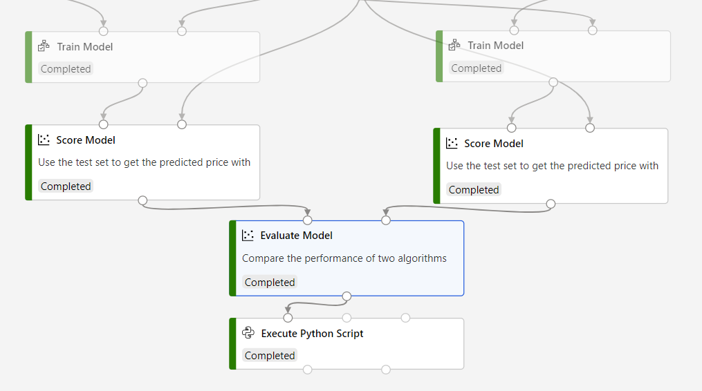 以下示例演示如何使用 “评估模型 ”和 “执行 Python 脚本 ”组件记录两个训练模型的均方误差。