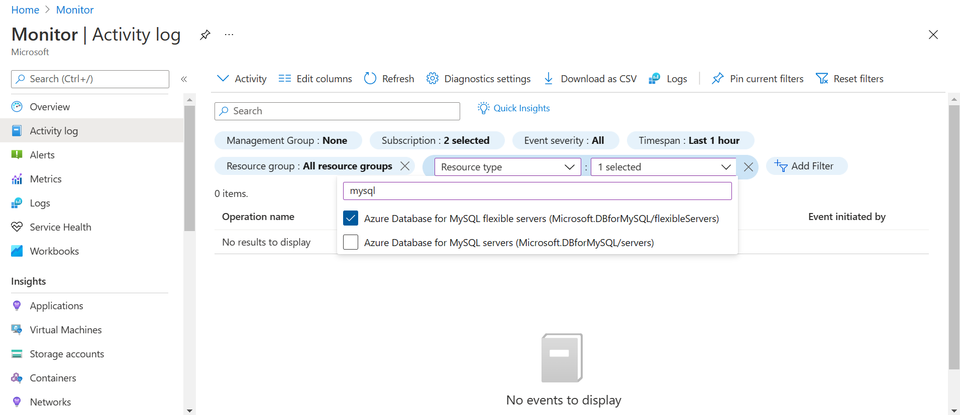 - 资源类型 = Azure Database for MySQL 灵活服务器 (Microsoft.DBforMySQL/flexibleServers)