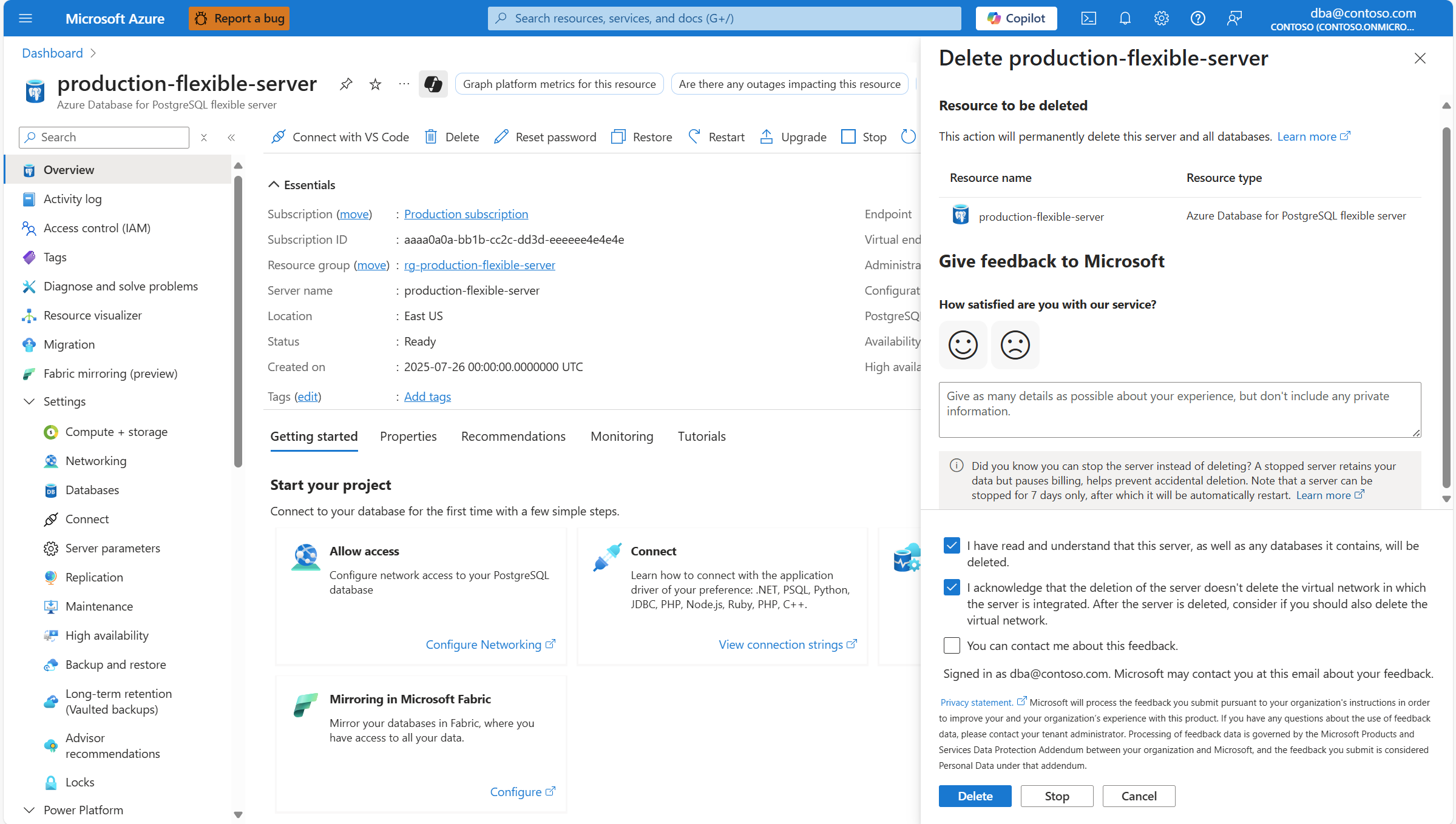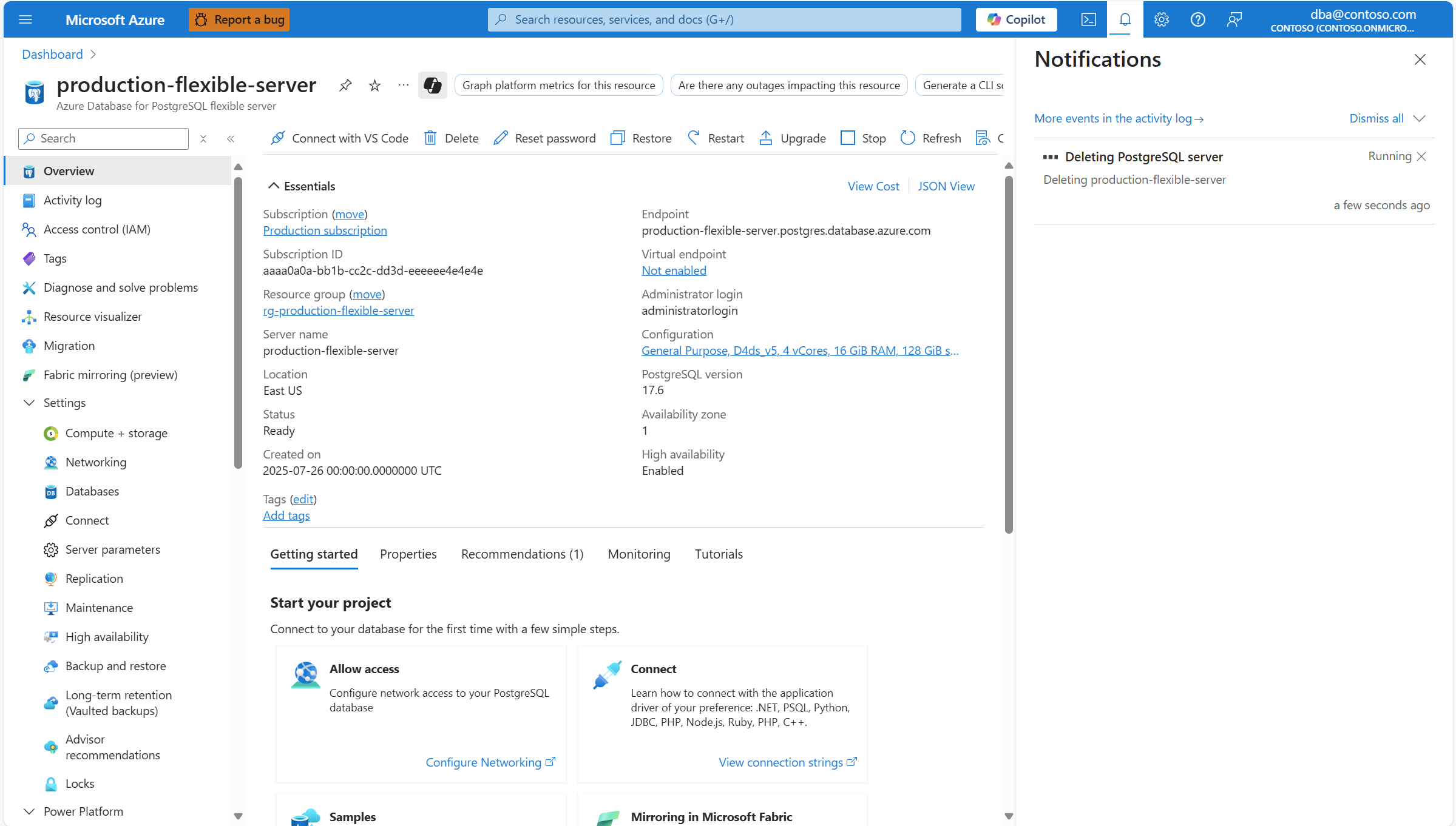 本文提供删除 Azure Database for PostgreSQL 灵活服务器实例的分步说明。