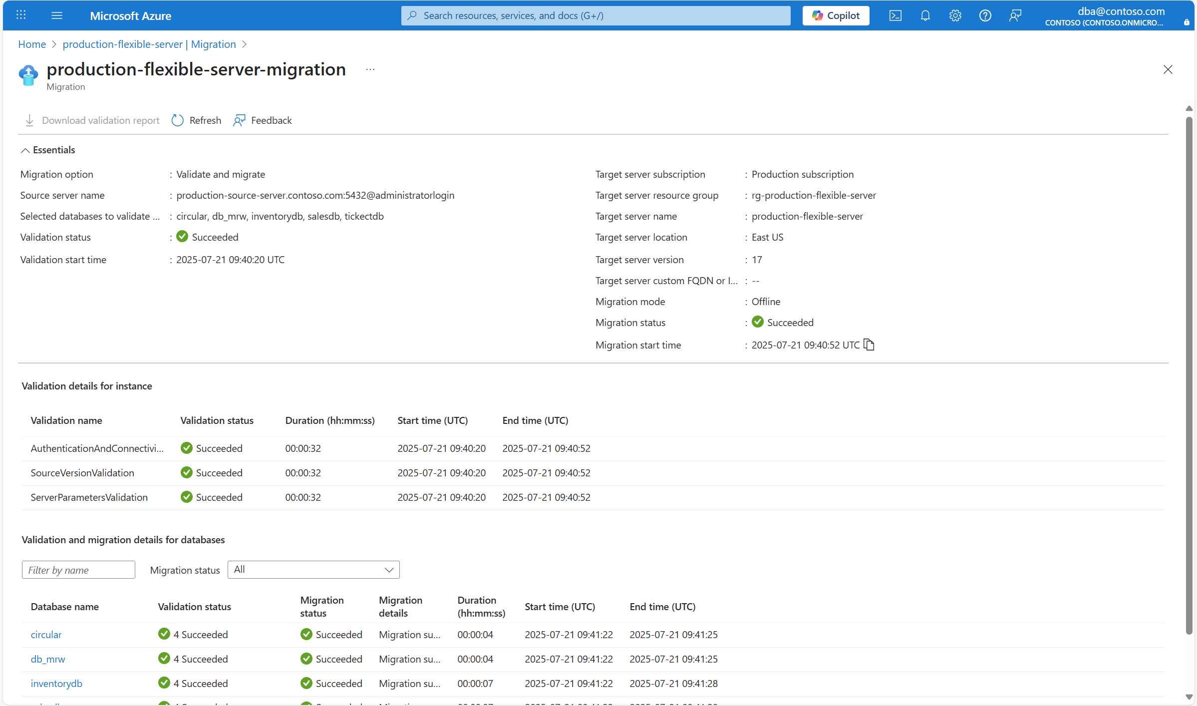 • 验证灵活服务器上的数据,并确保它是源实例的确切副本。
