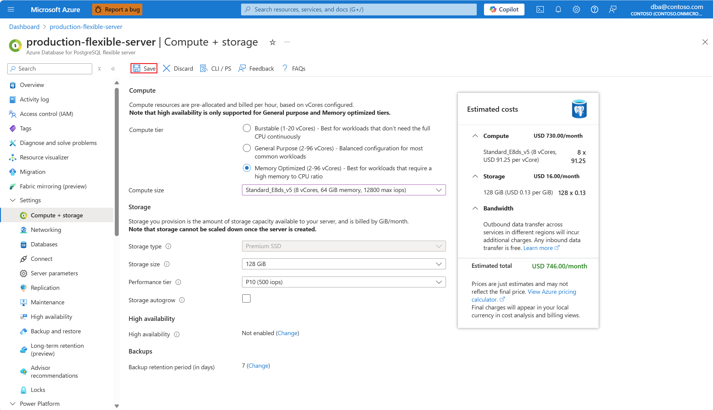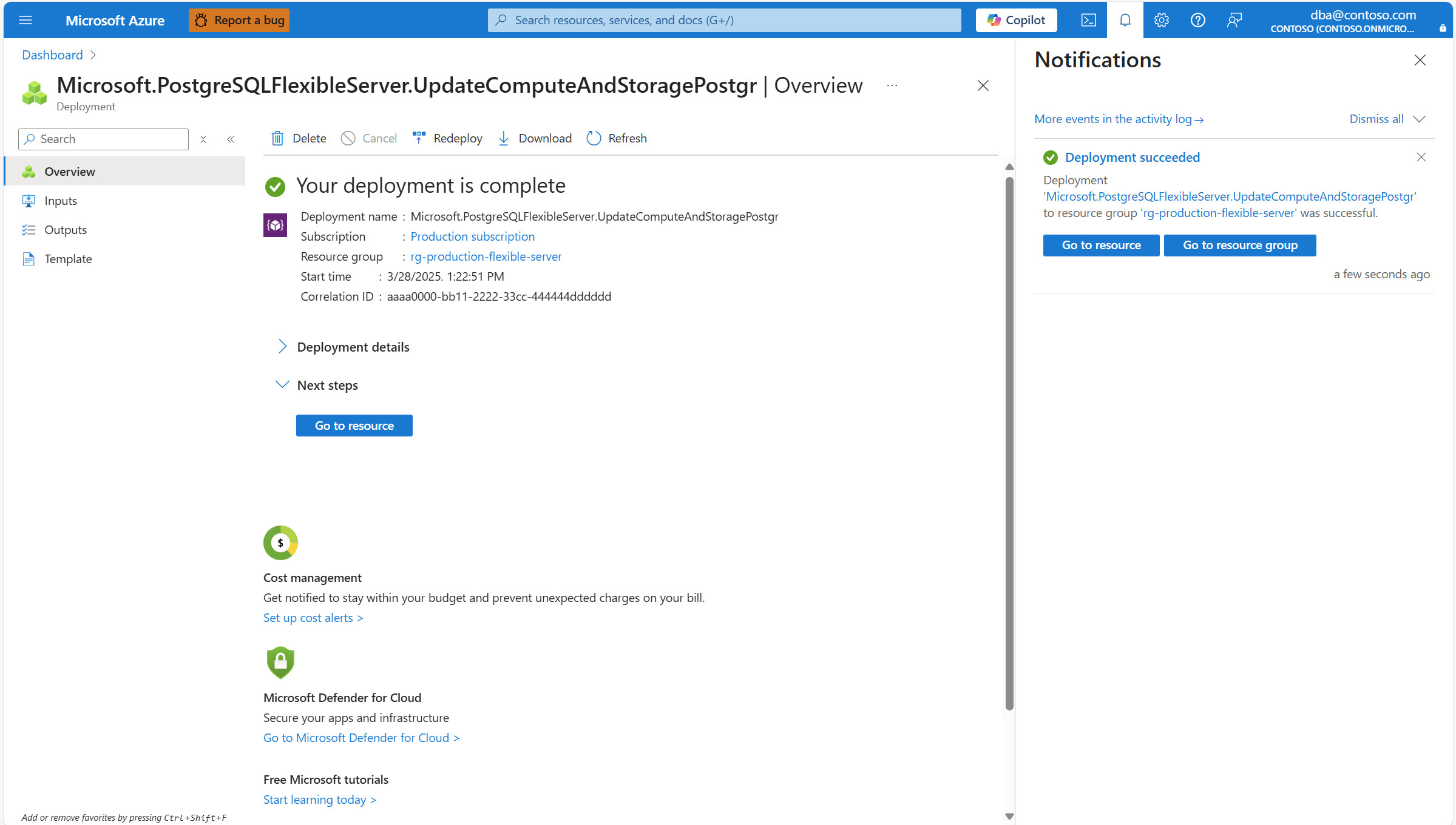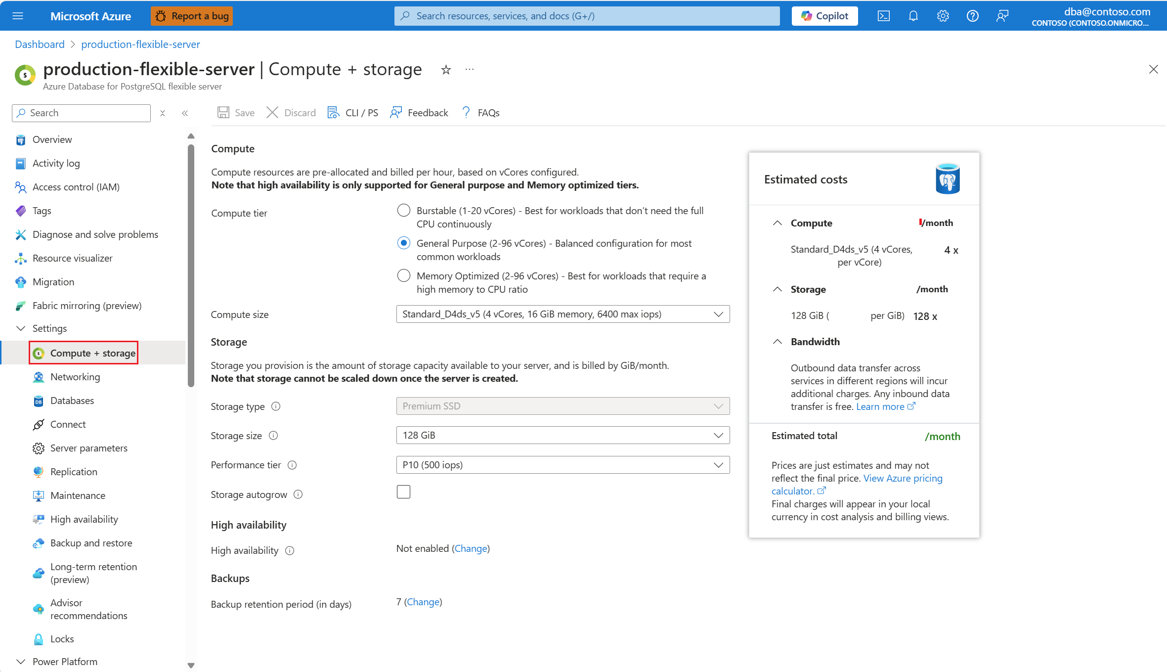 当请求 Azure Database for PostgreSQL 灵活服务器的计算资源进行缩放操作时,您的服务器将会自动重启,因此在此期间服务器将暂时无法使用。 有关该过程的工作原理以及停机时间的预期持续时间的详细信息,请参阅近零故障时间缩放。