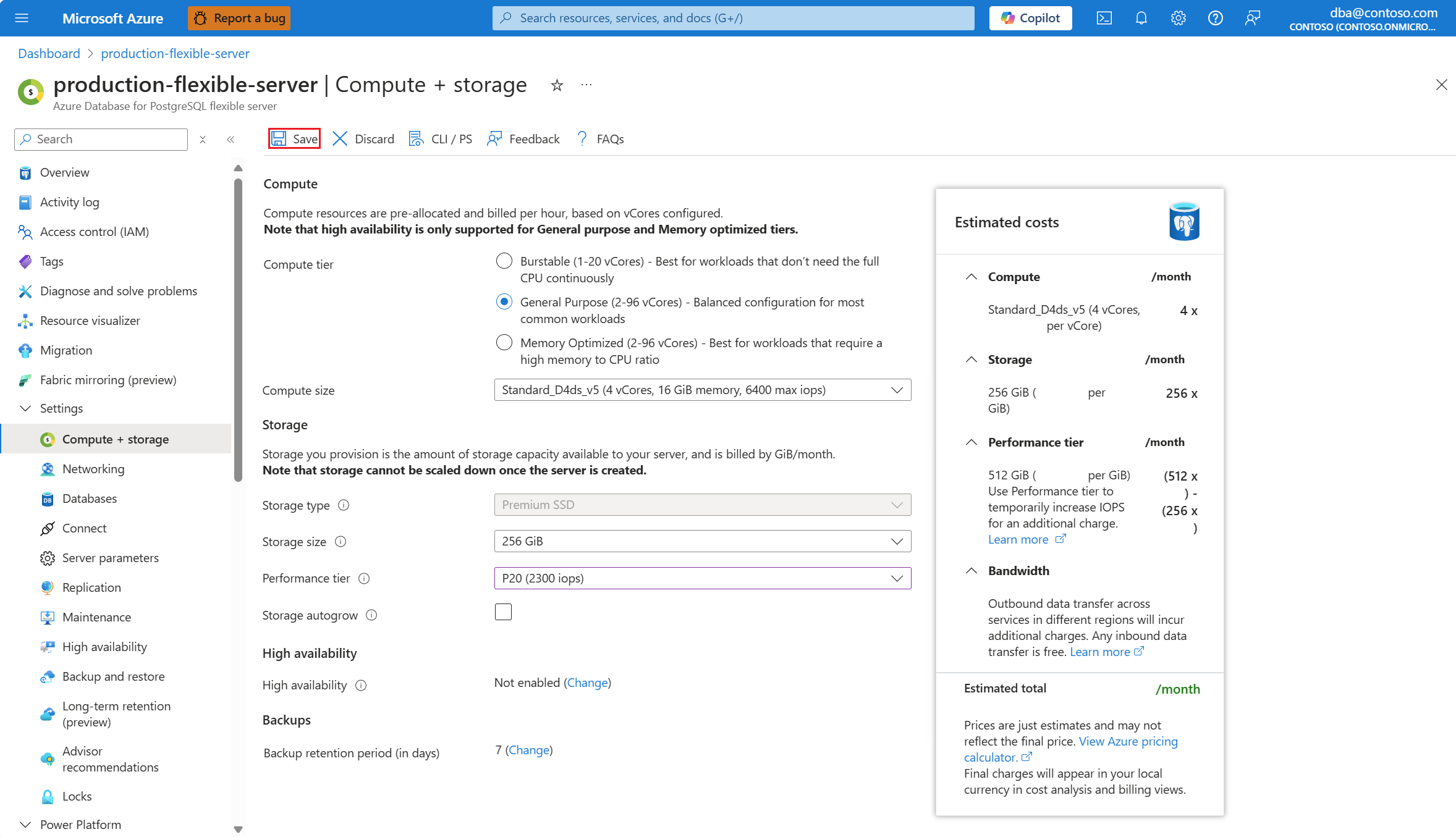 选择您的“Azure Database for PostgreSQL”灵活服务器。