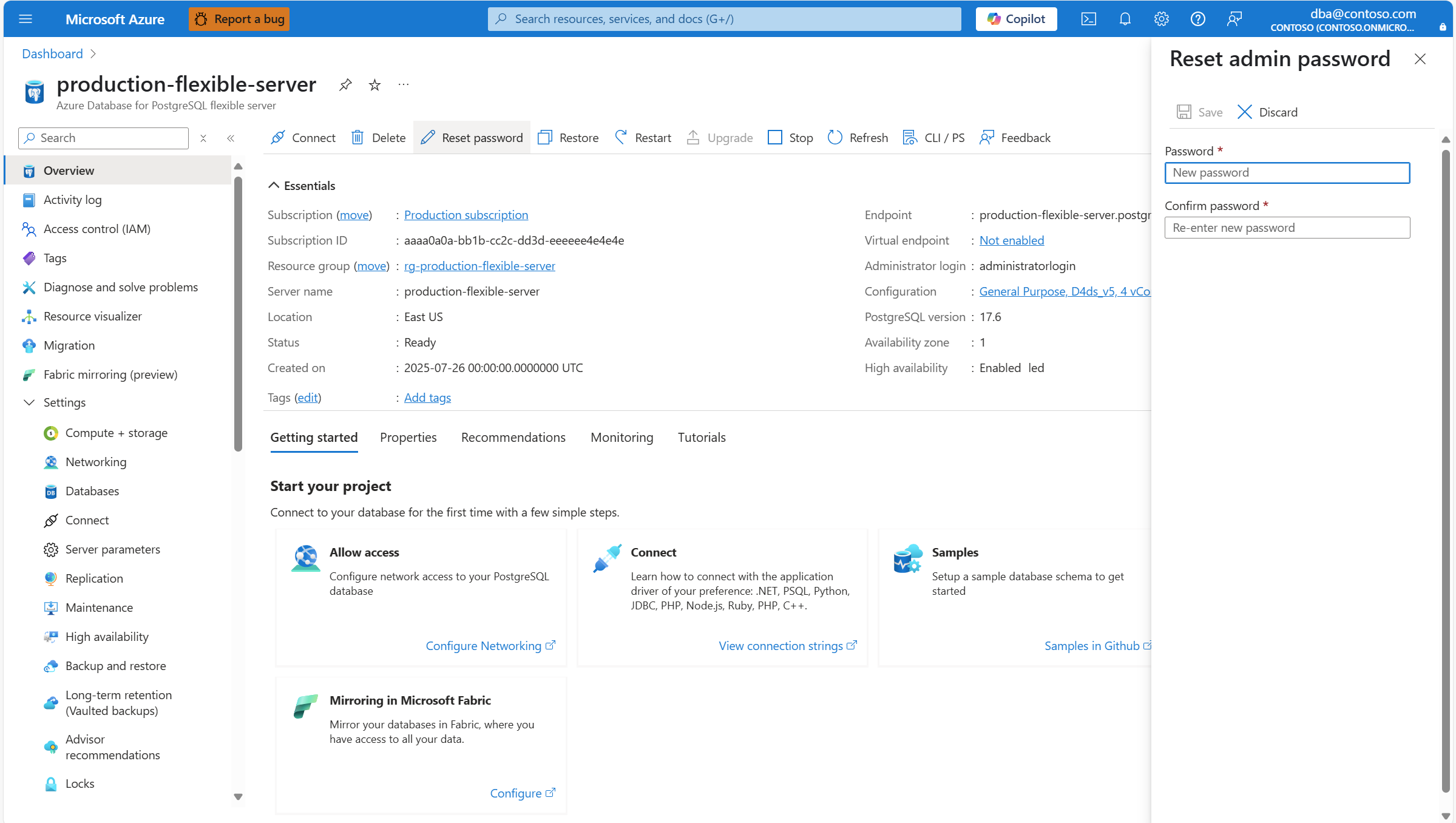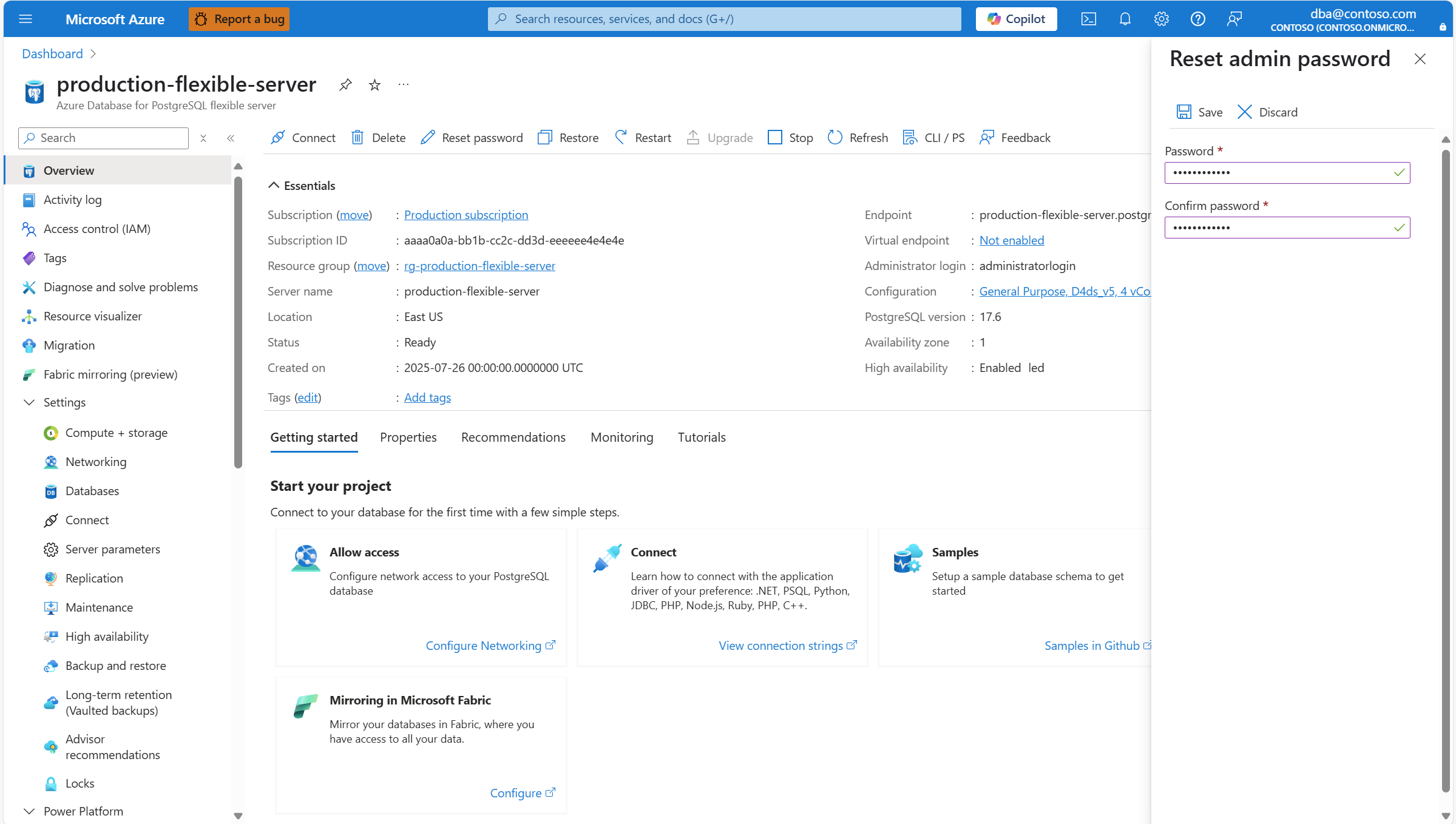 本文提供重置 Azure Database for PostgreSQL 灵活服务器实例的管理员密码的分步说明。
