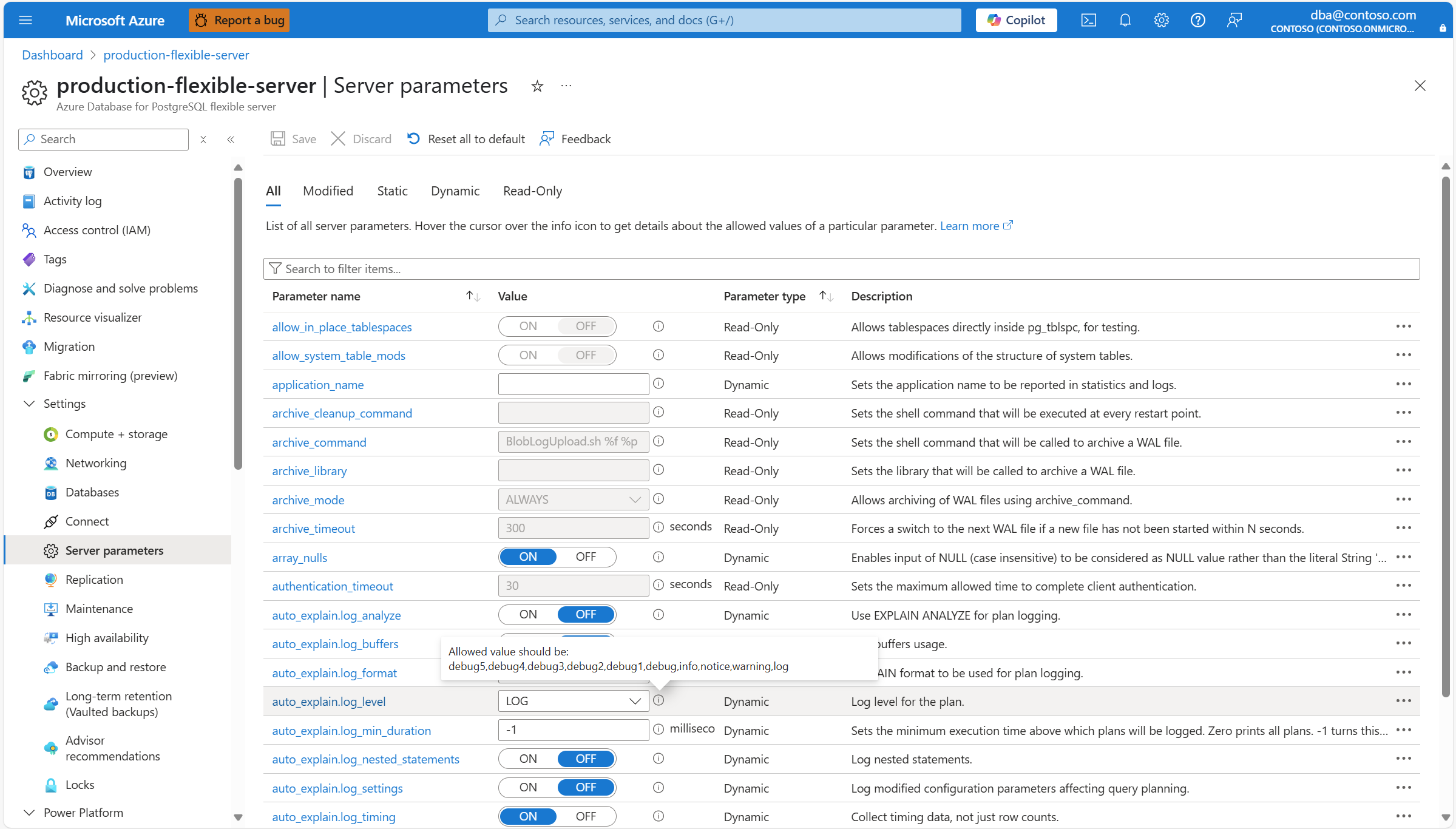 本文提供了列出 Azure Database for PostgreSQL 灵活服务器所有服务器参数的分步说明。