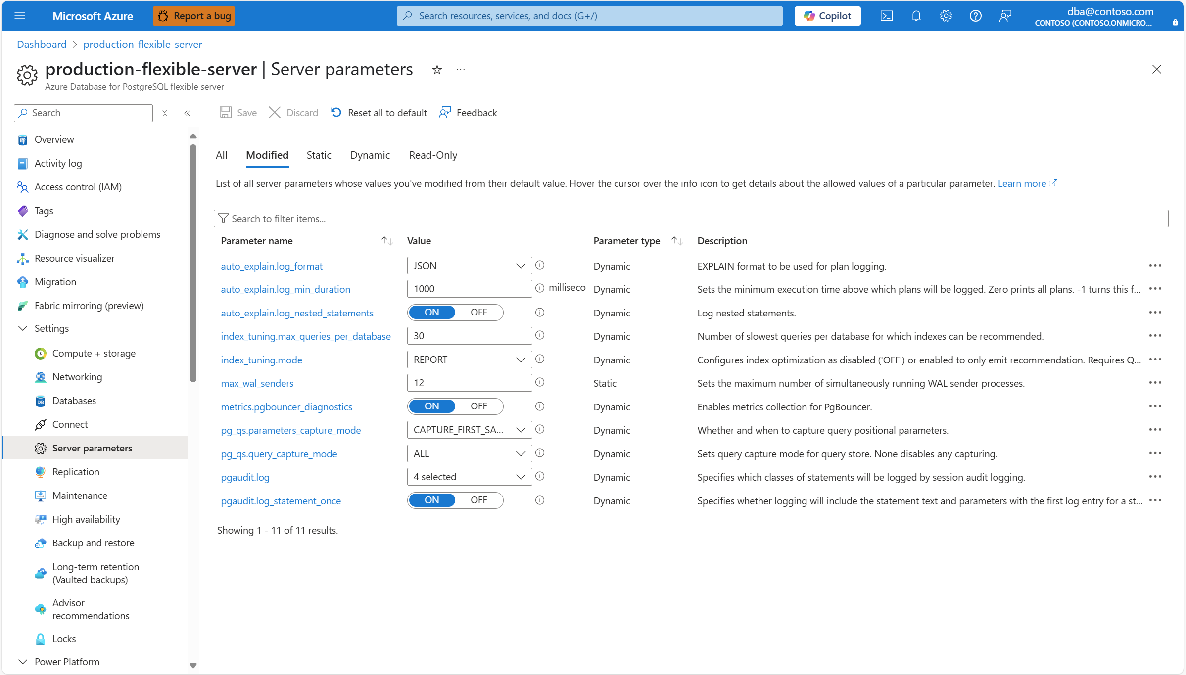 本文提供了列出所有服务器参数的分步说明,其中包含已修改的 Azure Database for PostgreSQL 灵活服务器的默认值。