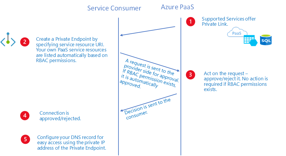使用者可以使用资源 URI 或别名请求连接到专用链接服务。 若要使用别名进行连接,请使用手动连接审批方法创建专用终结点。 若要使用手动连接审批方法,请在专用终结点创建流期间将手动请求参数设置为 True。 有关详细信息,请参阅 New-AzPrivateEndpoint 和 az network private-endpoint create。