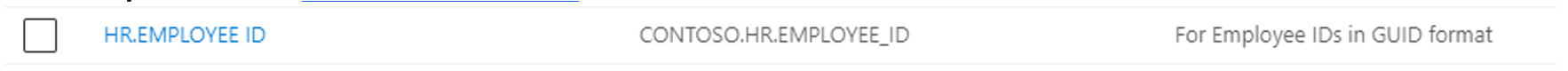 例如,对于虚构公司 Contoso 的自定义EMPLOYEE_ID分类,自定义分类的名称将 CONTOSO.HR。EMPLOYEE_ID,友好名称以 HR 的形式存储在系统中。员工 ID。