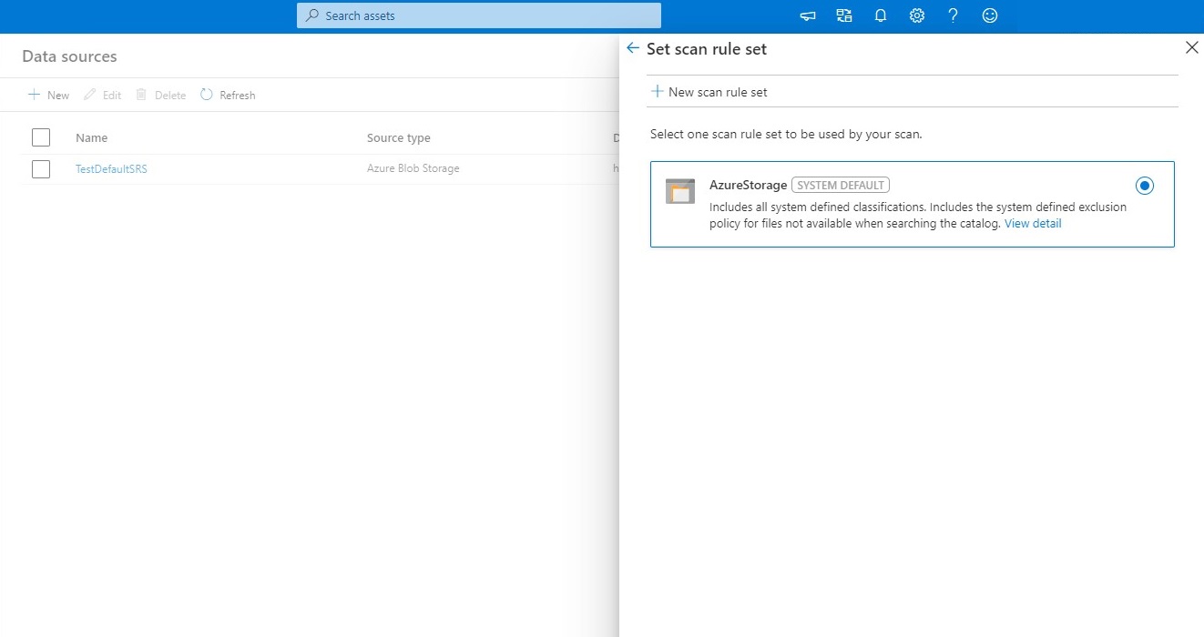 扫描规则集是将一组扫描规则组合在一起的容器。 可以轻松地将扫描规则集与扫描相关联。 例如,可以为每个数据源类型创建默认扫描规则集,然后默认将这些扫描规则集用于公司内的所有扫描。 你可能还希望具有适当权限的用户根据业务需求创建具有不同配置的其他扫描规则集。