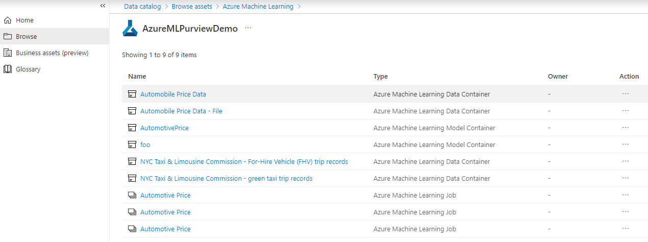 - 你必须在 AML 工作区中注册资产,然后才能在 Microsoft Purview 中显示这些资产。