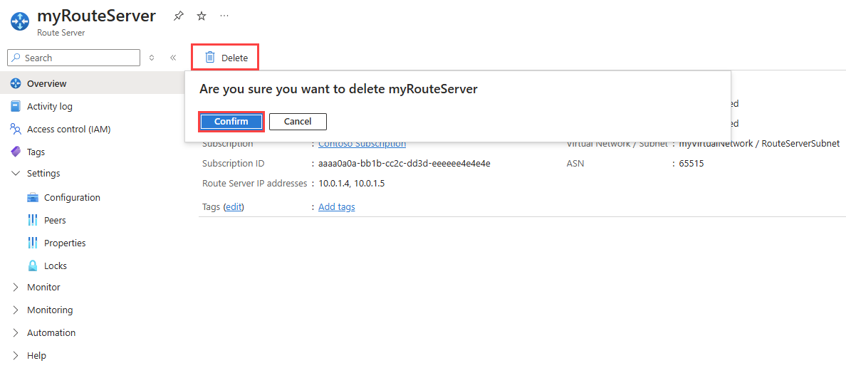 az network routeserver delete --name 'myRouteServer' --resource-group 'myResourceGroup'
