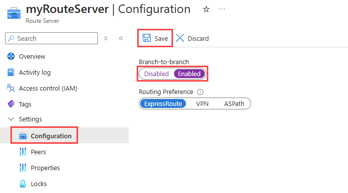 使用 az network routeerver update 命令配置路由服务器的路由首选项设置。