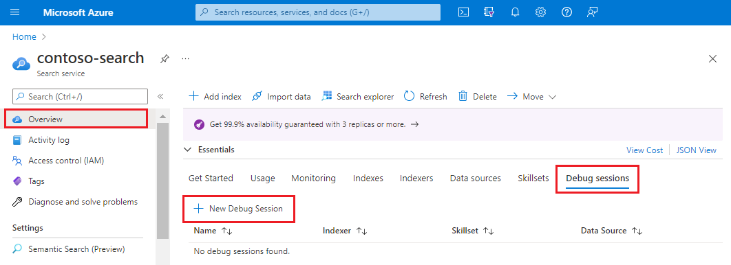 有关调试会话工作原理的背景信息,请参阅 Azure AI Search 中的调试会话。 若要使用示例文档练习调试工作流,请参阅教程:调试会话。