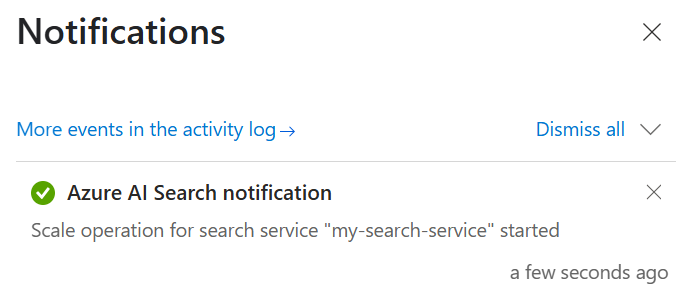 此作可能需要几个小时才能完成。 它发生在后台,因此搜索服务保持完全正常运行,可用于读写操作。