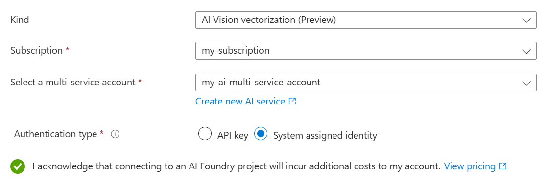多服务帐户提供对多个Azure服务的访问权限,包括用于内容提取Azure文档智能,以及用于内容嵌入的Azure视觉。 您的搜索服务需要访问 Document 布局技能 和 Azure 视觉多模式嵌入技能。