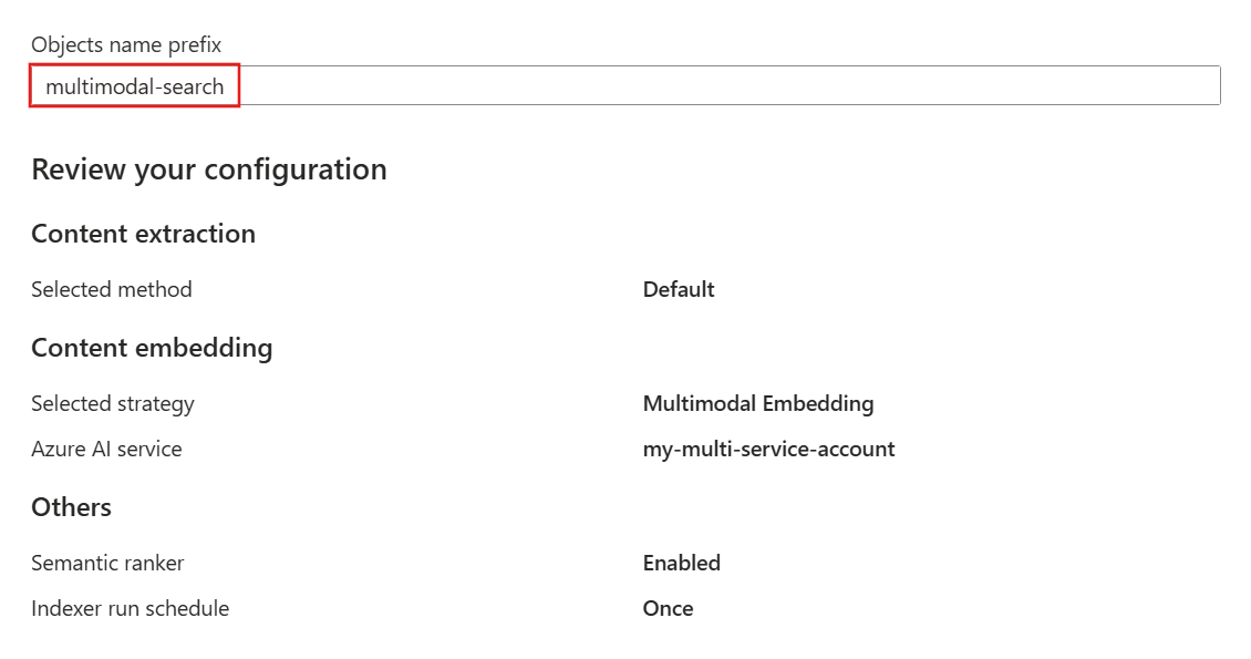 最后一步是查看配置并创建用于多模式搜索的必要对象。 如有必要,请返回到向导中的上一页以调整配置。