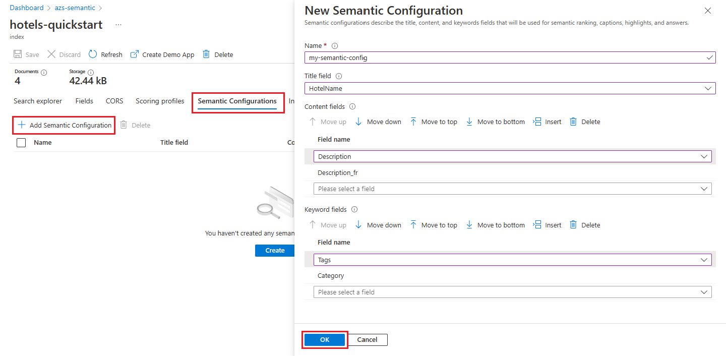 - Azure 门户,使用索引设计器添加语义配置。