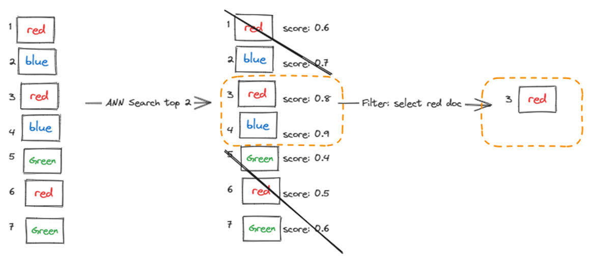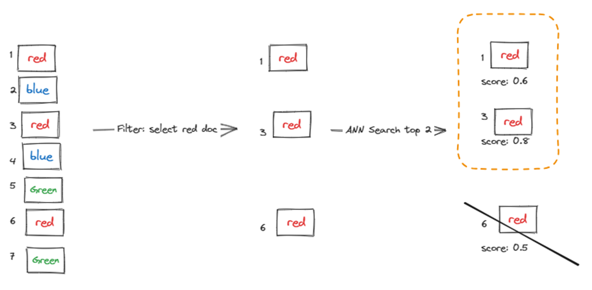 预筛选在查询执行之前应用筛选器,这减少了矢量搜索算法的候选集。 然后,将从此筛选后的集合中选择前 k 个结果。