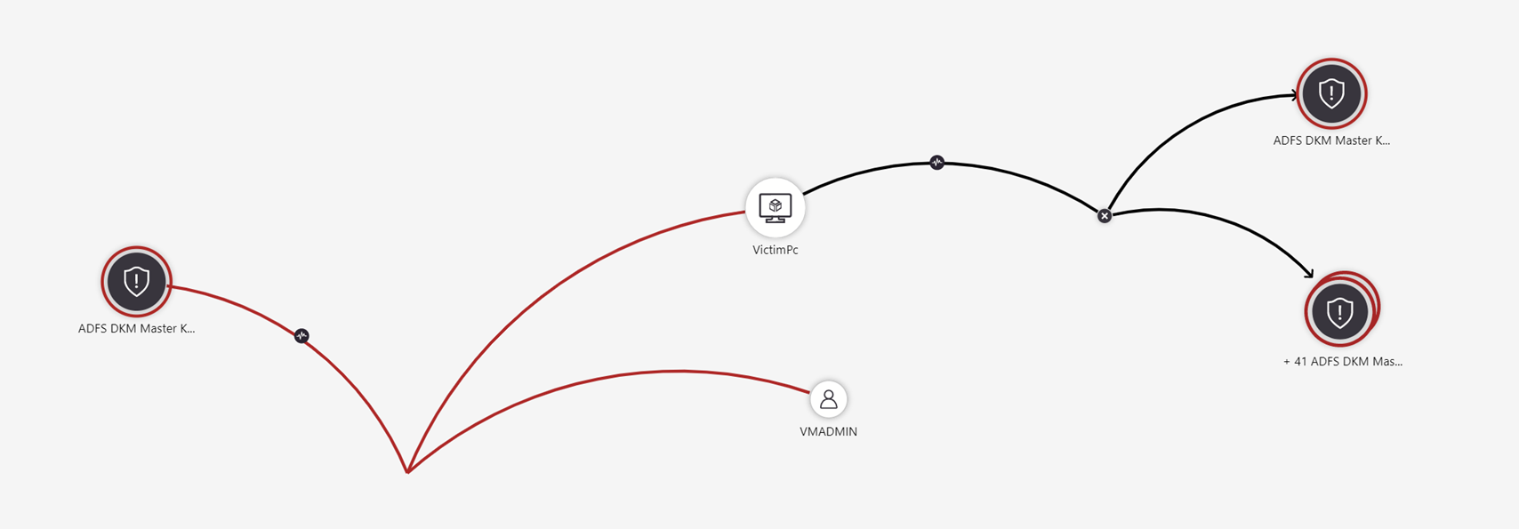 例如,可以请求相关警报。 如果选择探索查询,则会将生成的实体添加回此图。 在此示例中,选择“相关警报”向此图返回了以下警报: