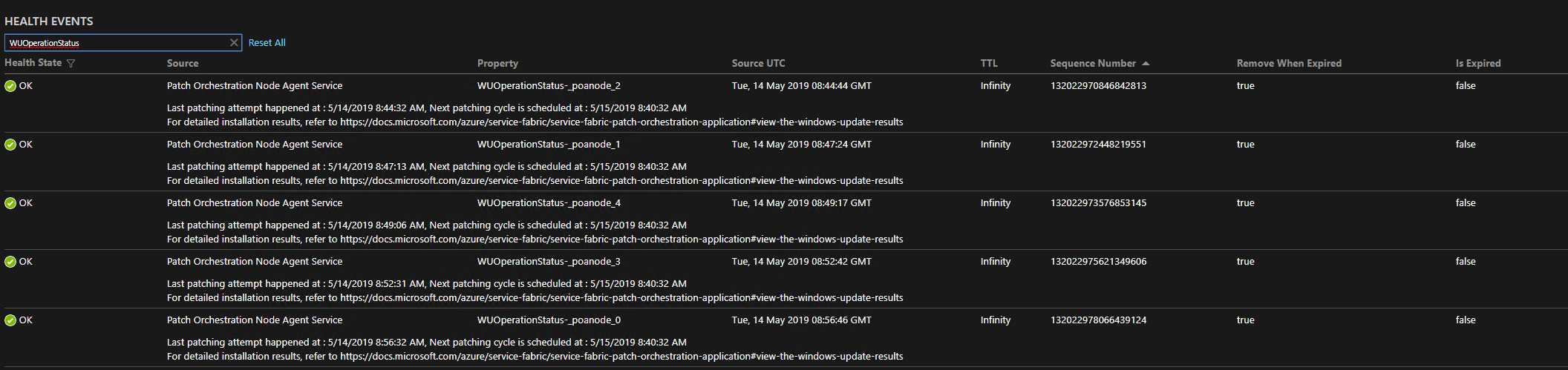 POA 使用 Service Fabric 的修复管理器服务来禁用/启用节点和执行运行状况检查。 POA 创建的修复任务跟踪每个节点的 Windows 更新进度。