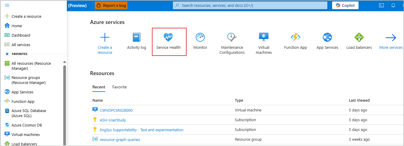 - 在门户中,选择“服务运行状况”。