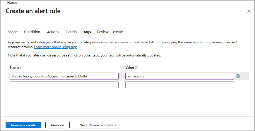 使用 “审阅 + 创建 ”选项卡可以查看所选的所有内容。 完成后,选择“ 创建 ”以完成并创建警报。