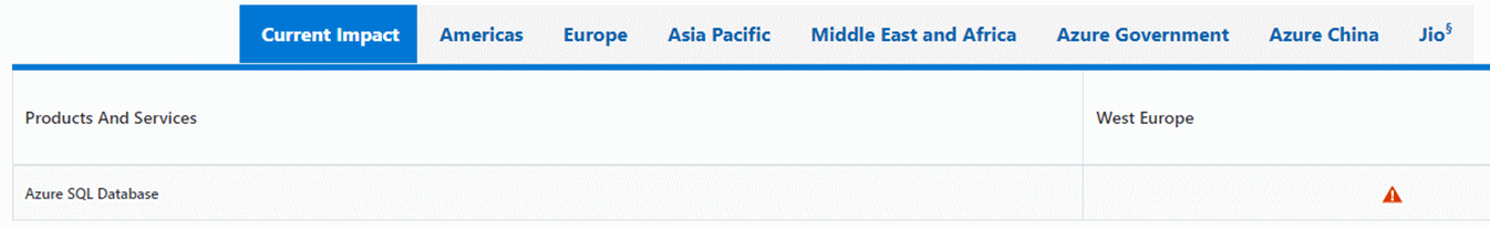 Azure 状态页提供 Azure 服务和区域的运行状况以及所有服务可用性的全局视图。
