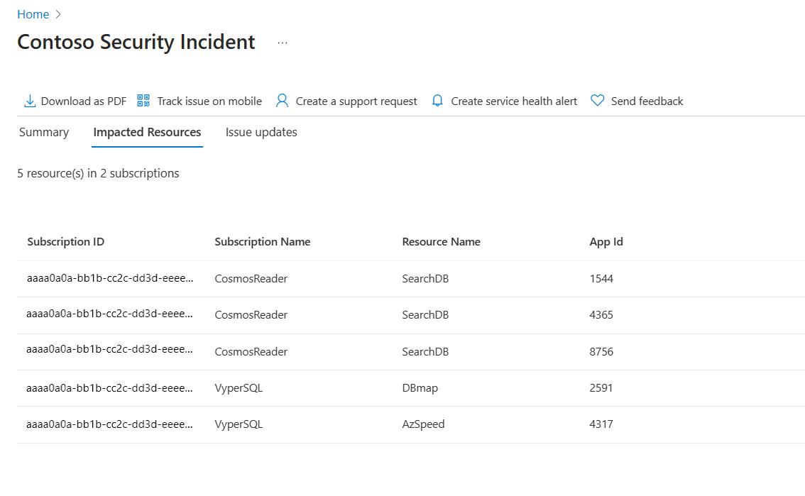 为了支持查看受影响资源的体验,服务运行状况包含一项功能来实现以下目的: