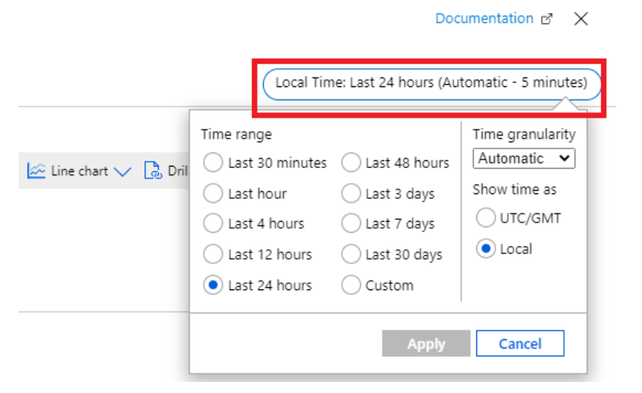 还可以将时间范围从过去 30 分钟调整为过去 30 天或某个自定义时间范围。