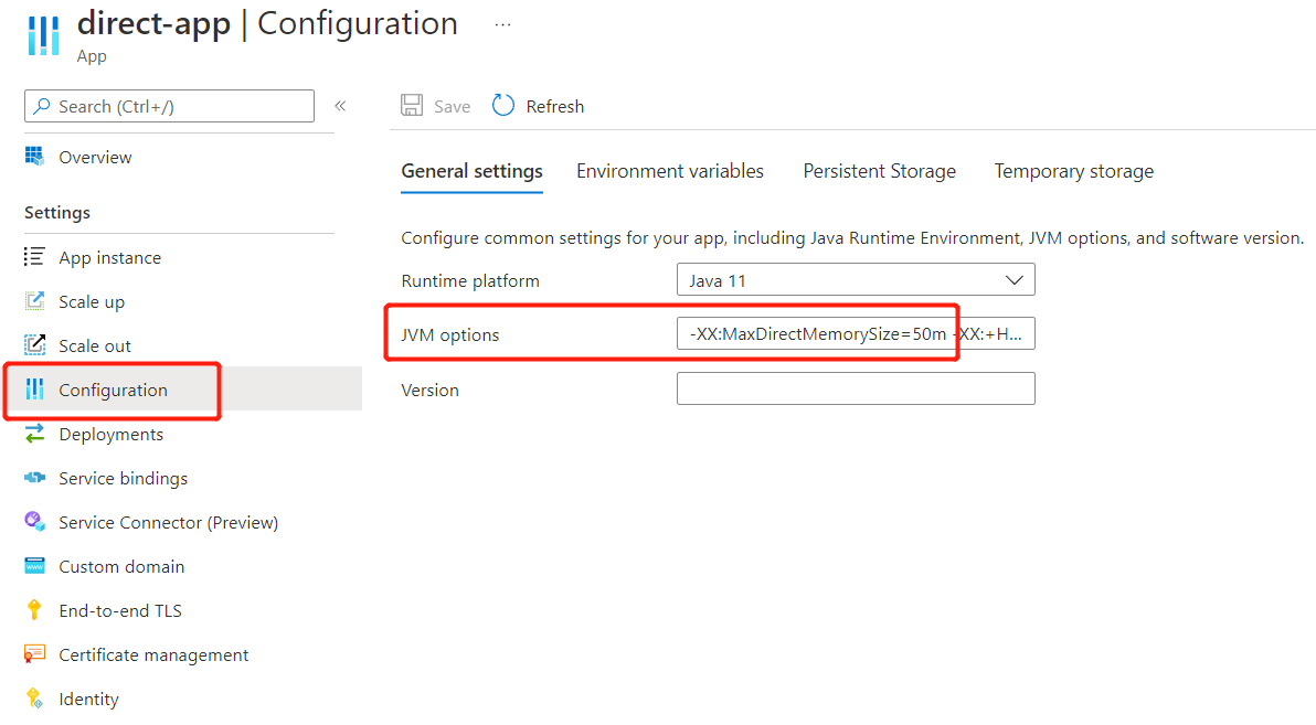 可以使用 Azure 门户或 Azure CLI 修改 JVM 选项。