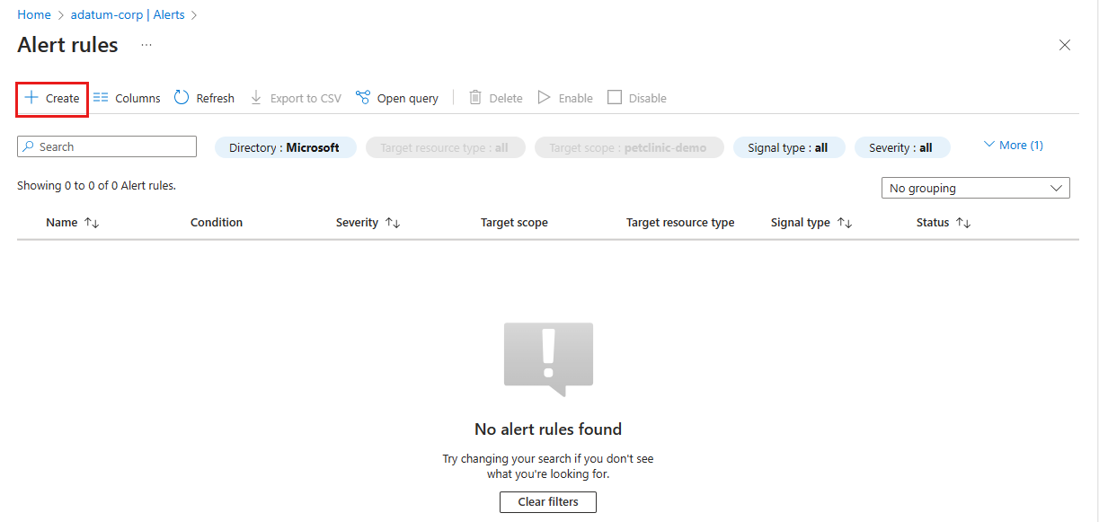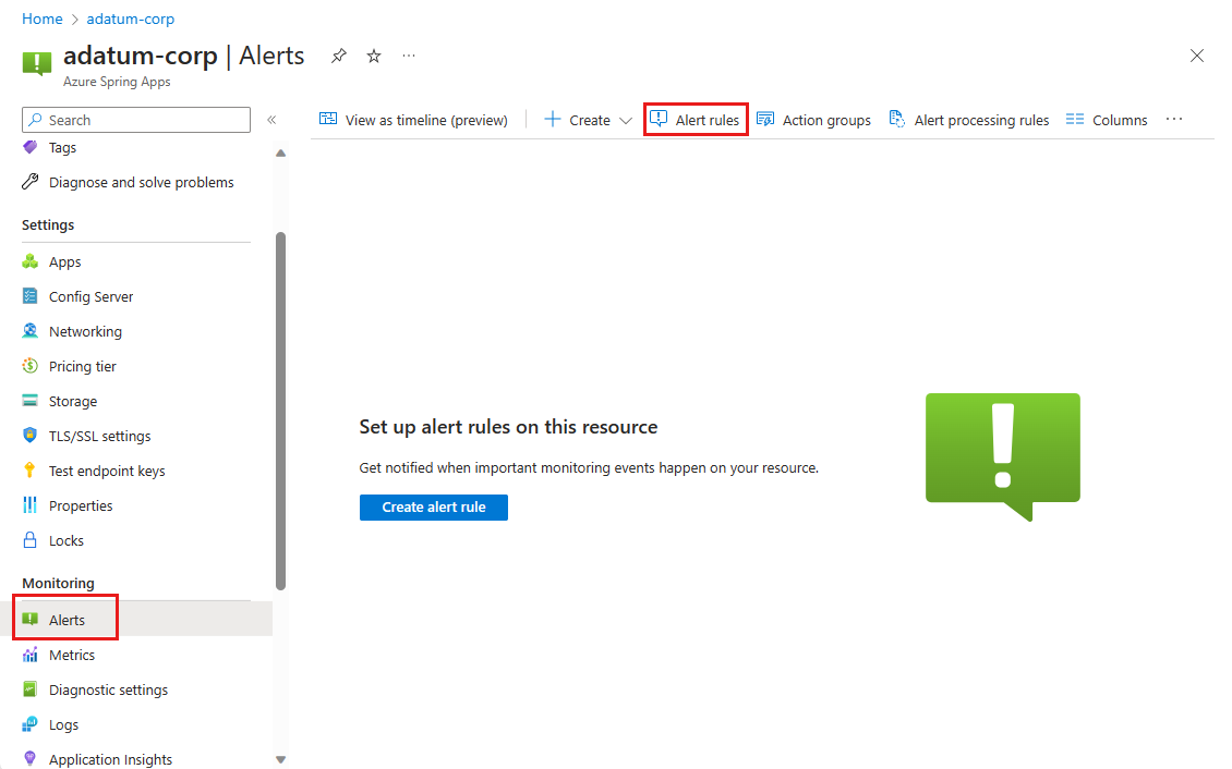 本文介绍如何在 Azure Spring Apps 中使用警报和操作组监视 Spring 应用资源。