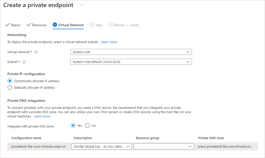 Name: storageaccount.privatelink.file.core.chinacloudapi.cn