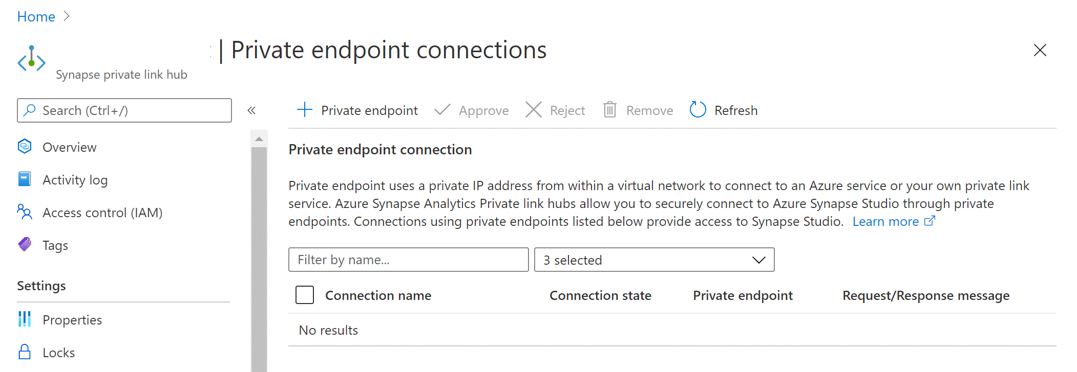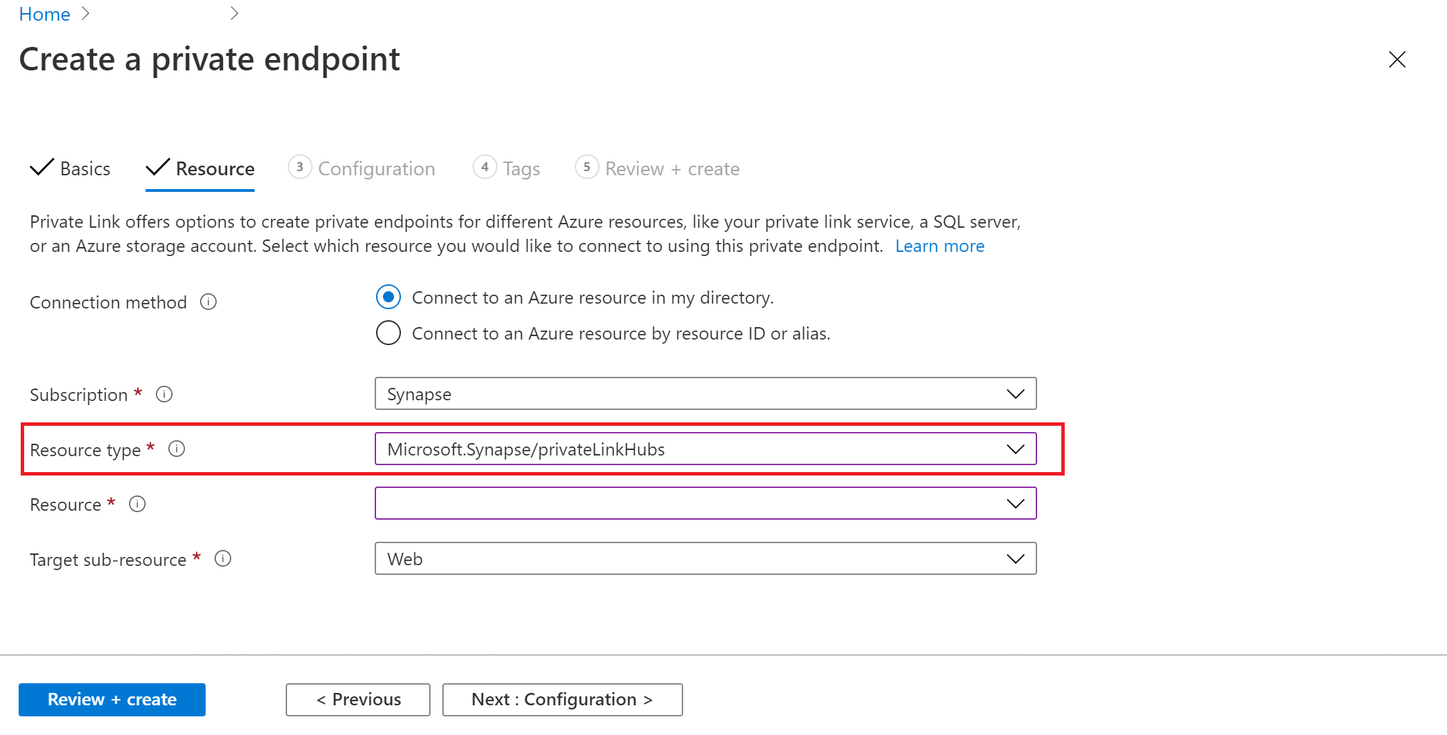 在资源选项卡上选择Microsoft.Synapse/privateLinkHubs资源类型。