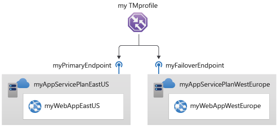 本快速入门需要两个部署在两个不同的 Azure 区域(中国东部和中国北部)的 Web 应用程序实例。 每个都可以充当流量管理器的主终结点和故障转移终结点。
