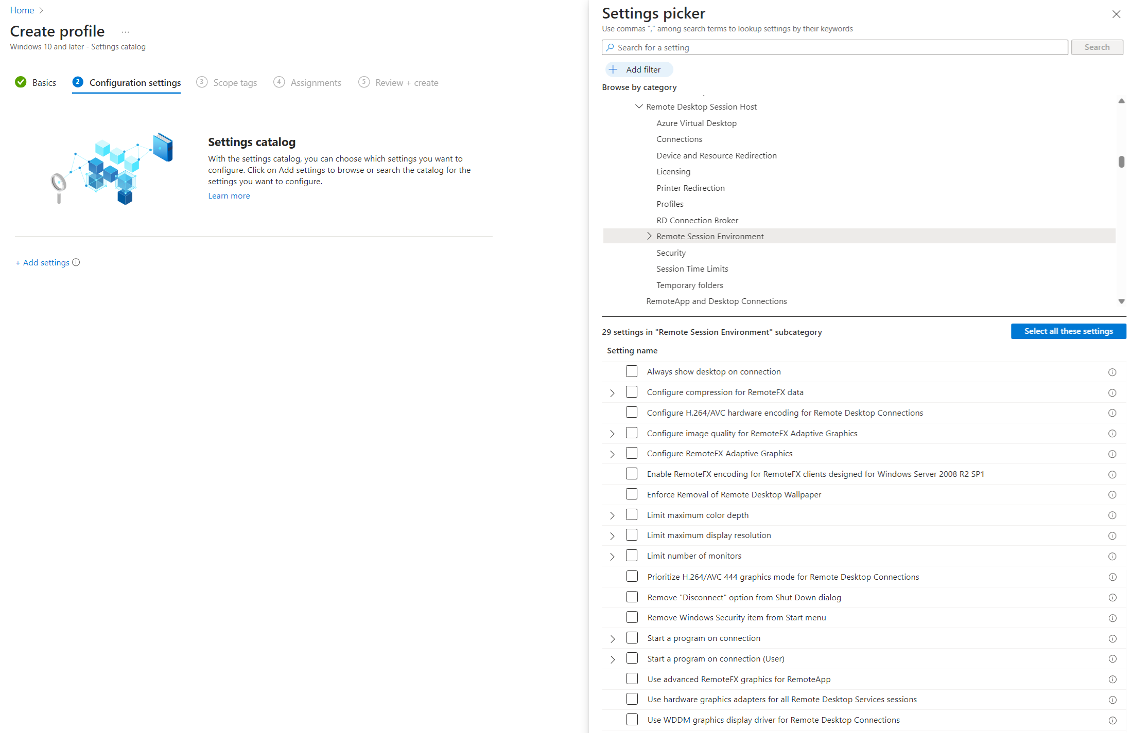 3. 在设置选取器中,浏览到“管理模板”>“Windows 组件”>“远程桌面服务”>“远程桌面会话主机”>“远程会话环境”。