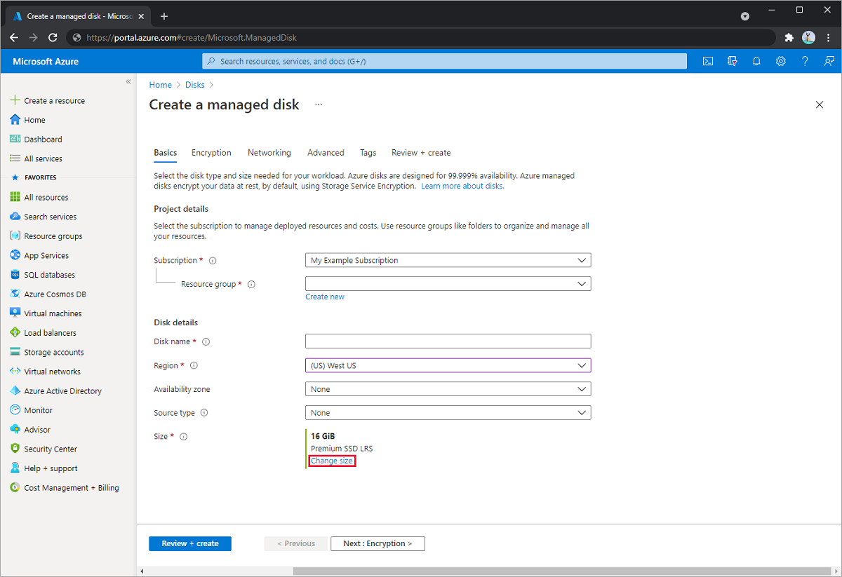 - 仅支持服务器端加密,目前不支持 Azure 磁盘加密。