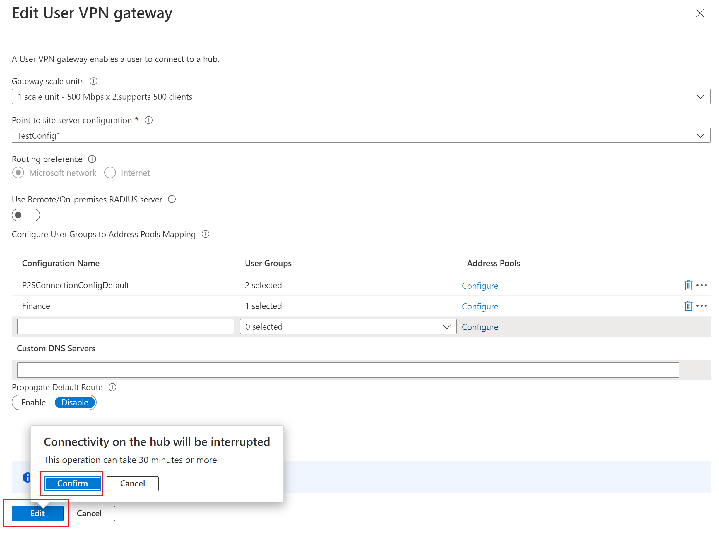 创建所需的配置后,选择“编辑”,然后单击“确认”以保存设置。