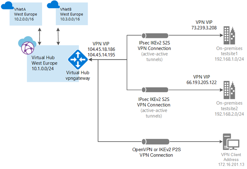 虚拟网络不包含任何虚拟网络网关。 如果虚拟网络包含网关(VPN 或 ExpressRoute),则必须删除所有网关。 此配置要求将虚拟网络改为连接到虚拟 WAN 中心网关。