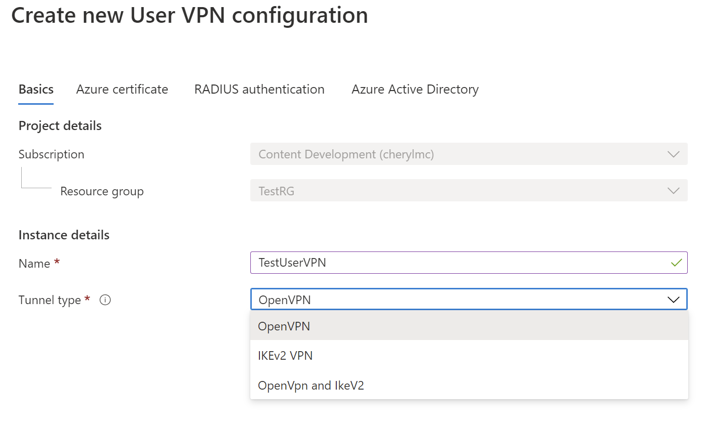 | OpenVPN | Windows操作系统 | Azure VPN 客户端 | |
