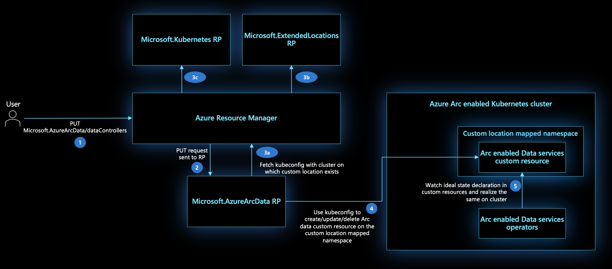 kubeconfig与群集通信,以在映射到自定义位置的命名空间上创建已启用 Azure Arc 的数据类型的自定义资源。- 在自定义位置存在之前,已通过创建群集扩展部署了已启用 Azure Arc 的数据服务操作程序。