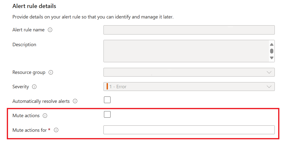 如果要在触发警报后取消规则作的指定时间,请使用 静音作 选项。 该规则仍会运行并创建警报,但不会触发操作,从而避免干扰。 值的 静音作 必须大于警报生效的频率。