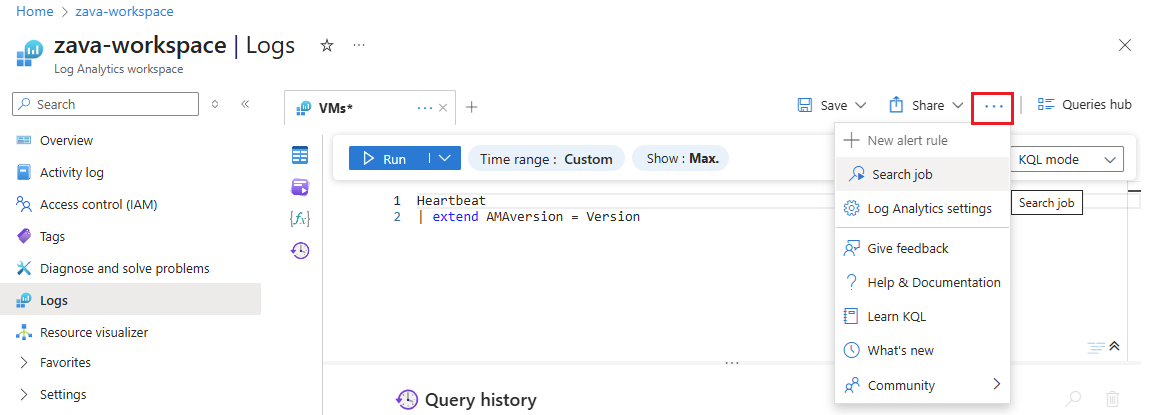 选择屏幕右侧的省略号菜单,然后选择 “搜索作业”。