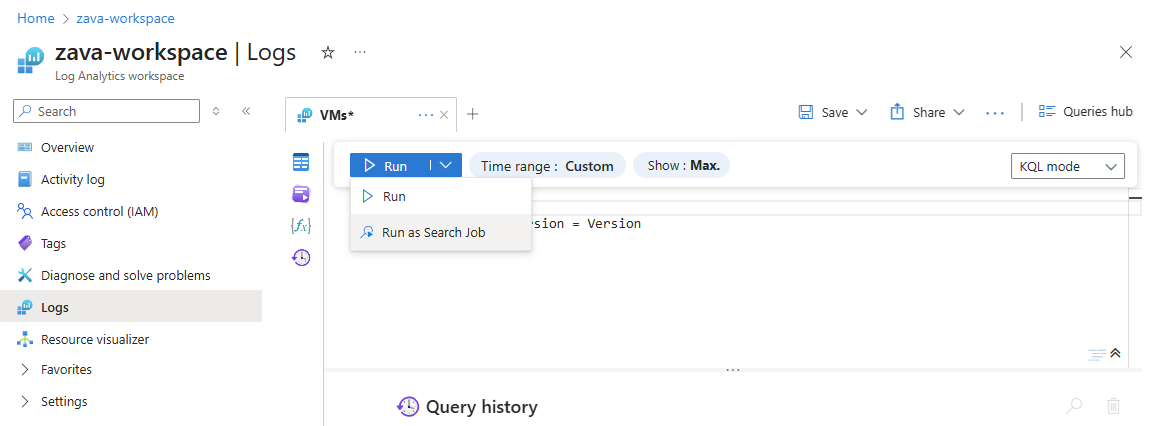 若要运行搜索作业,请在 Azure 门户中执行以下操作: