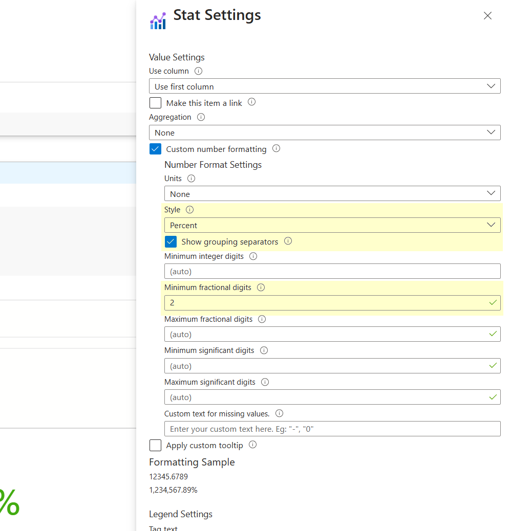 对于每个指标,必须设置值的格式。 选择“统计信息设置”。