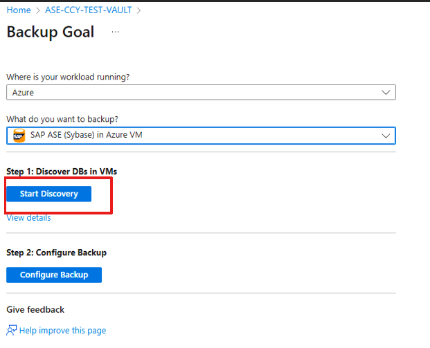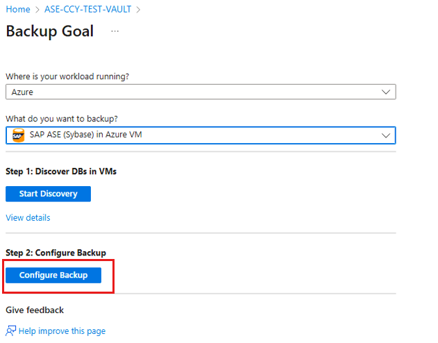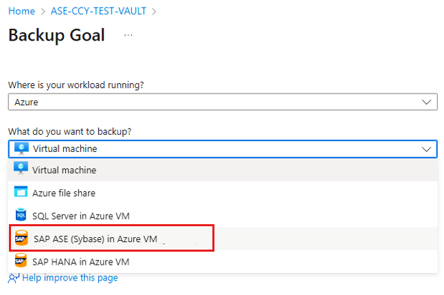 本文介绍如何使用 Azure 门户为 SAP Adaptive Server Enterprise (ASE) (Sybase) 数据库(在 Azure 虚拟机上运行)配置备份。
