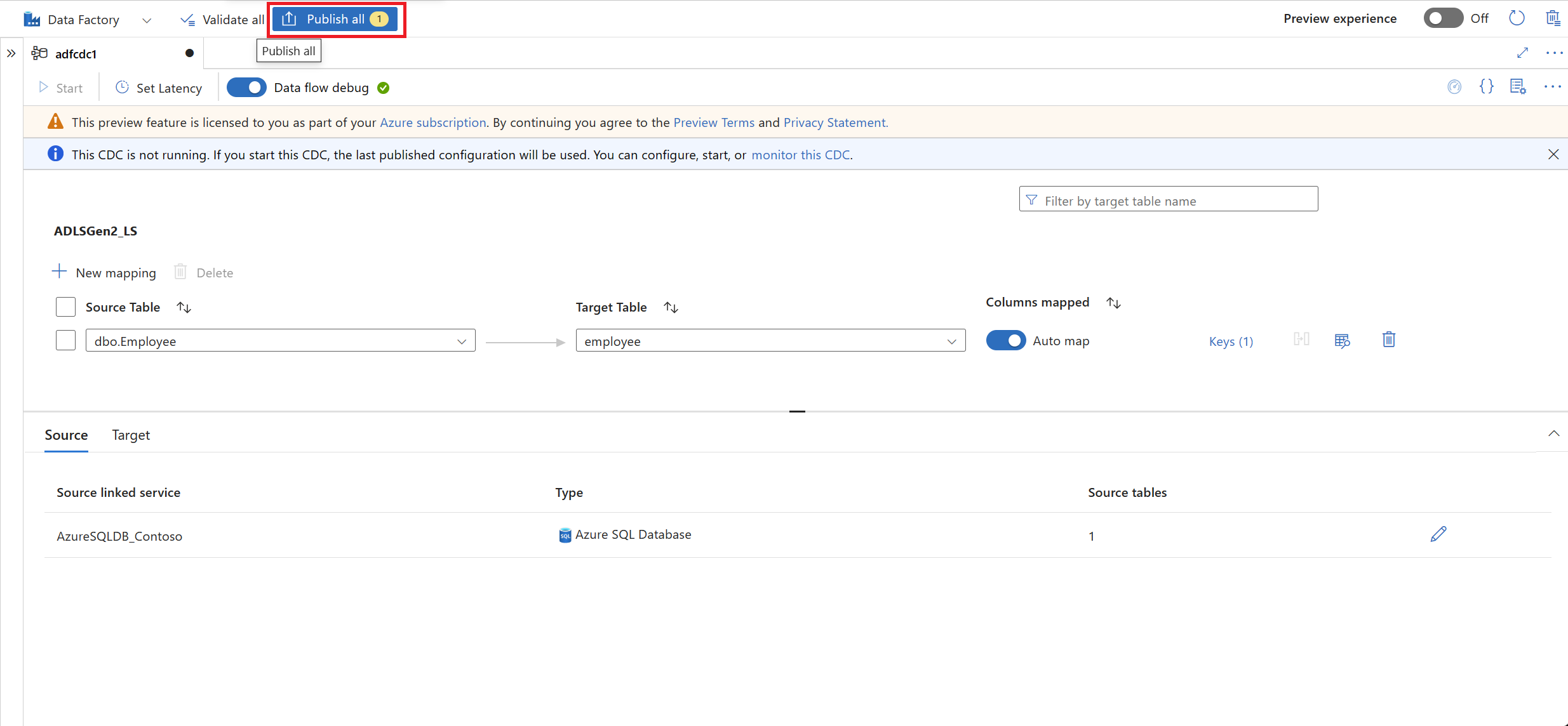 配置 CDC 后,选择“全部发布”来发布更改。