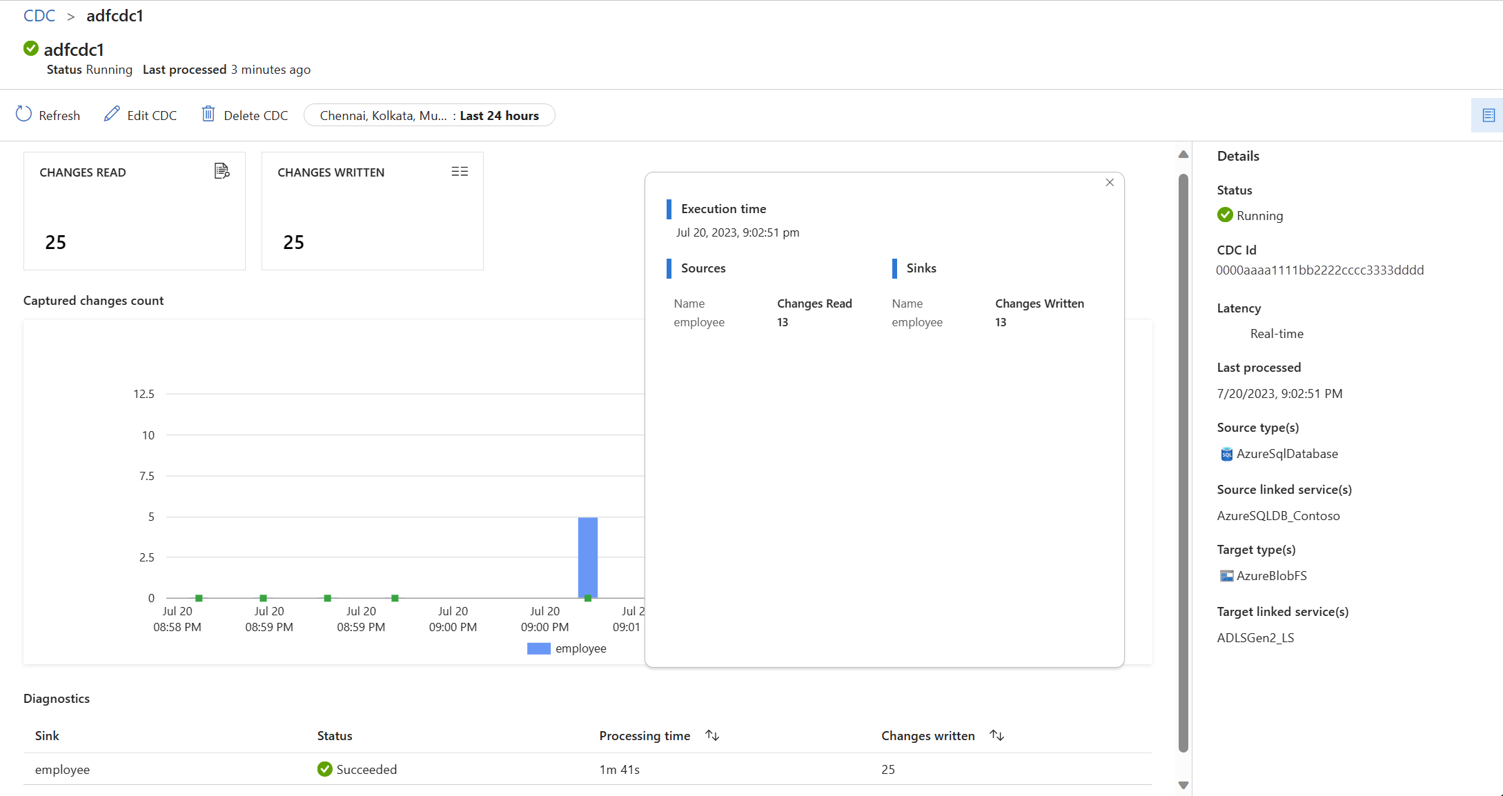 选择 CDC 延迟,然后选择“应用”以进行更改。