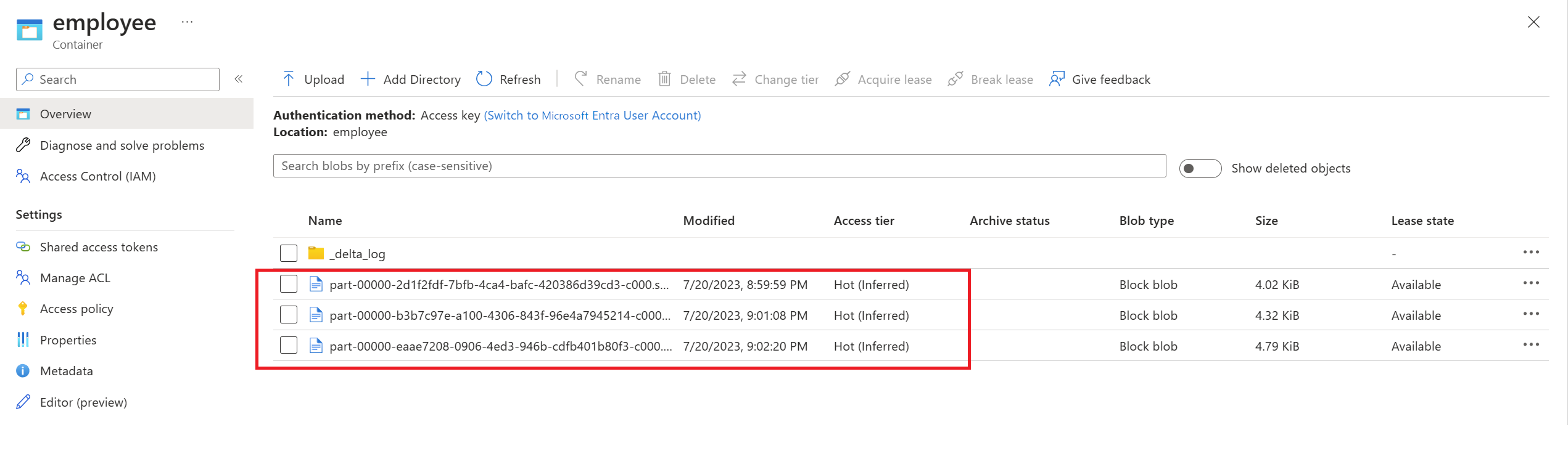 验证更改数据是否以 Delta 格式到达存储在 Azure Data Lake Storage Gen2 中的 Delta Lake 中。